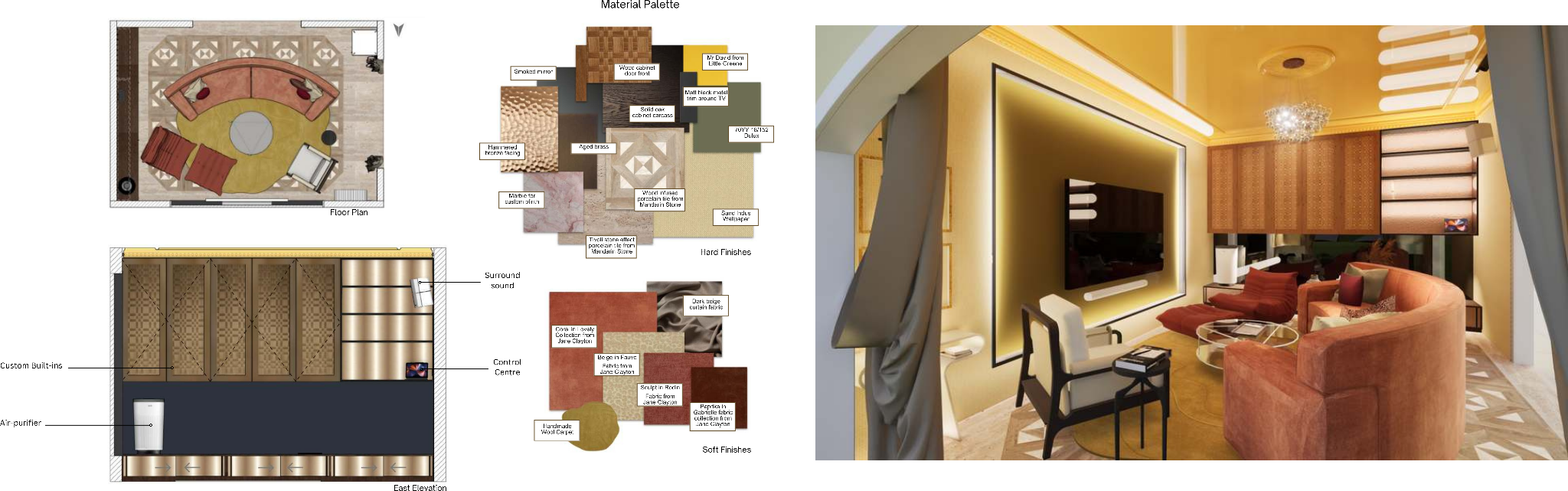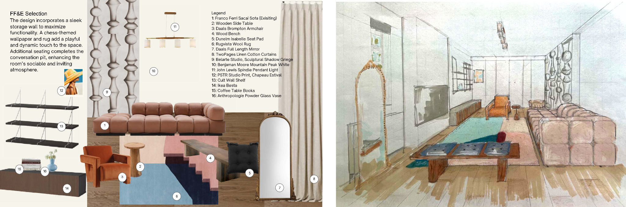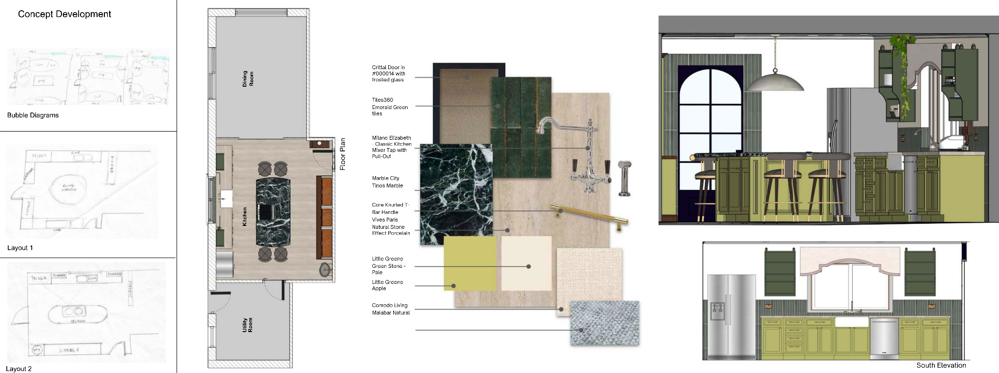 Kelly’s portfolio layout and attention to detail, from notes to sample boards to renders and sketches, stood out to the company. Less than one month into her internship, Kelly was asked to help them with a new initiative – they were going to trial a new online idea for clients who need spatial advice on small spaces or single rooms.